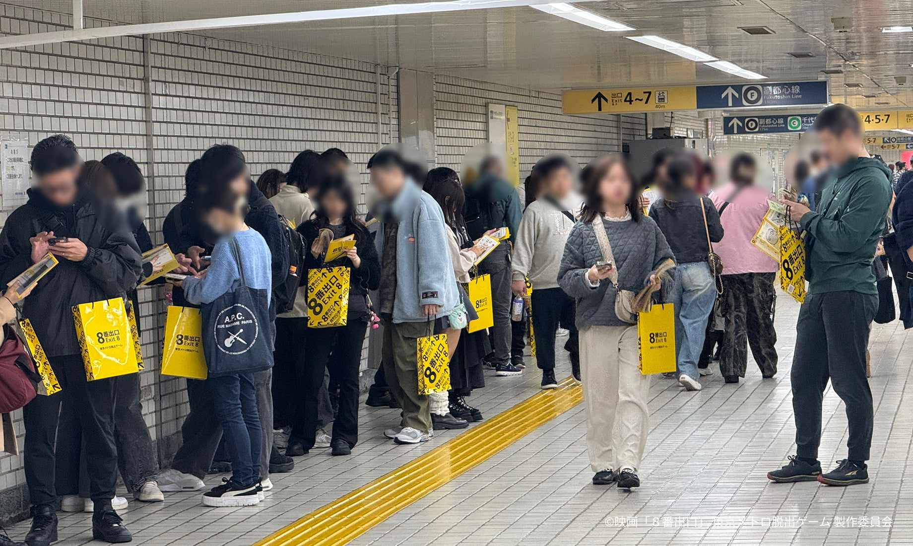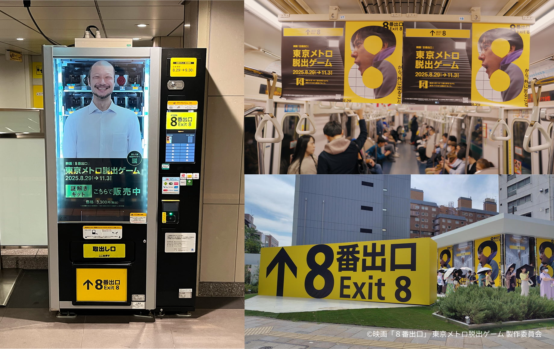 撮影と並行して実施したプロモーション施策では、駅や車両の広告を8番出口でジャックし、参加者が地下施設を巡る体験型脱出ゲームを実施。駅や車両内という日常空間の中で映画の世界観を体験できる場をつくった。