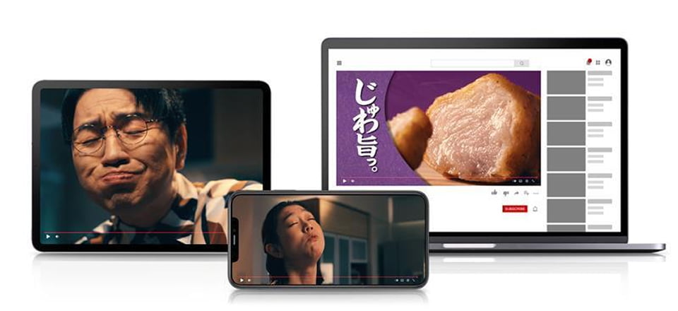 WebCMでは、"多くの視聴者に共感をしてもらい、製品を手に取ってもらいたい"という思いから、クリエイティブに関して、「じゅわ旨っ。®」の虜篇では、「そんなに美味しいなら食べてみたい」と感じていただけるような、製品を食べた表情をそのままに描きました。